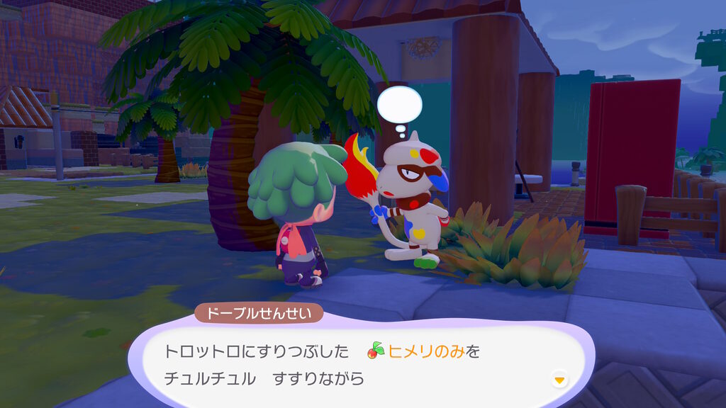 まずはドーブルせんせいが欲しがってた、ヒメリを潰して絵の具にしたやつを届けてみますぞ。