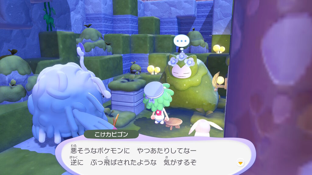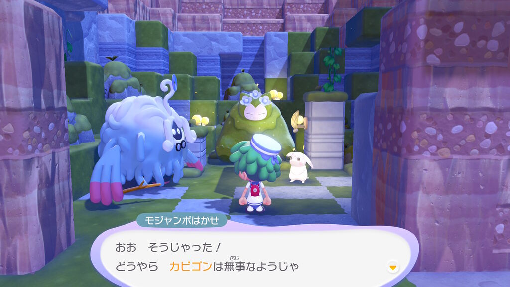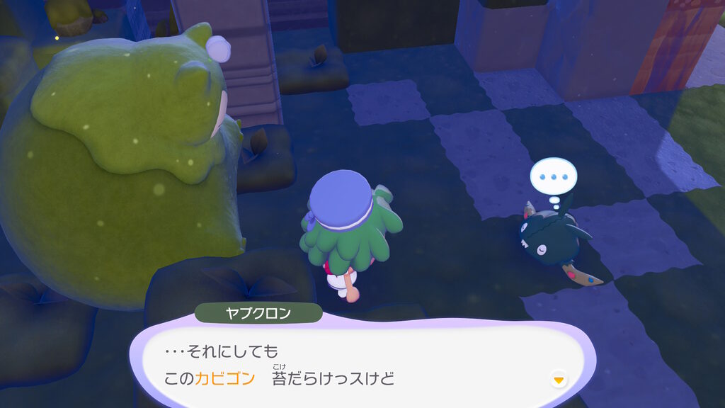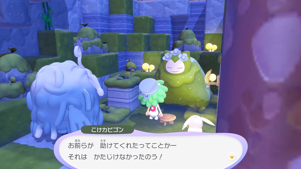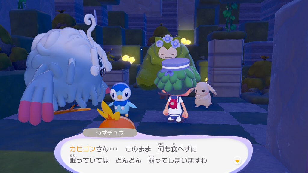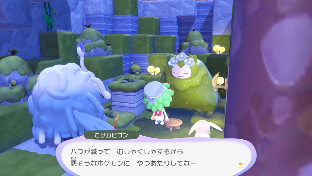 カビゴンがどうしてこんなところで苔だらけになるまで寝ていたのかの経緯を軽く聞いた後、このカビゴンにお供えをすれば、なんらかのバフがもらえるらしいことが分かったのでした。
