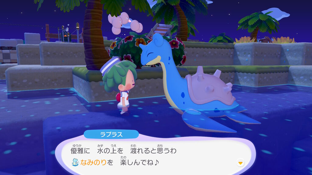 海岸にヤシの木と生垣4つで、ラプラスを呼ぶことができるみたい。
